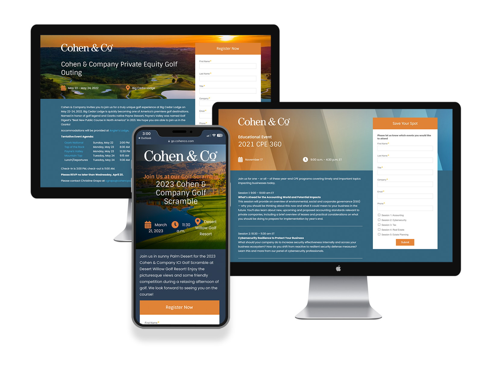 At Cohen & Co, we host numerous client and prospect events throughout the year. I led a strategic initiative to streamline event registration for both in-person and virtual events by developing standardized, customizable templates. These templates ensure brand consistency, mobile optimization, and seamless integration with Salesforce and Webex, enhancing campaign tracking and revenue attribution. This initiative improved operational efficiency, enhanced the user experience, and provided deeper data insights for the business.